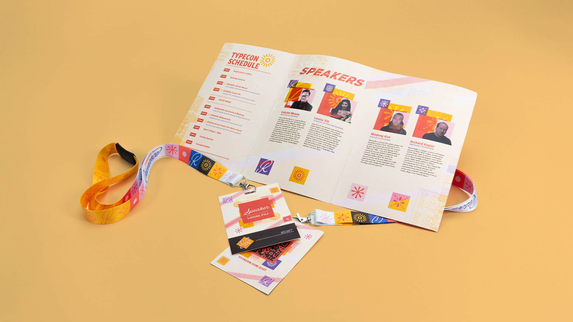 A cohesive branding system created for Type Con, including a large-format poster, brochure, schedule, and guest designer profiles.