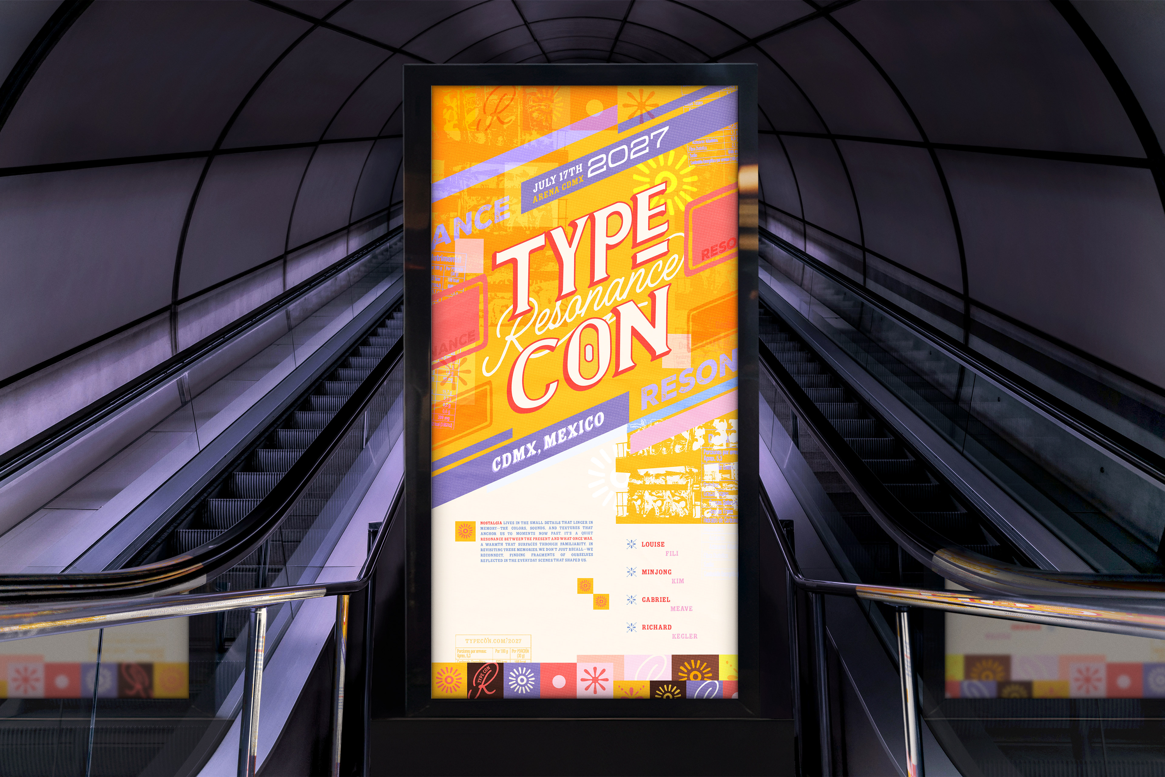 A maximalist layout approach and layered visual elements were used to reinforce the nostalgic tone while maintaining consistency across all deliverables. The final system balances cultural inspiration with functional information design for a large-scale typographic event.